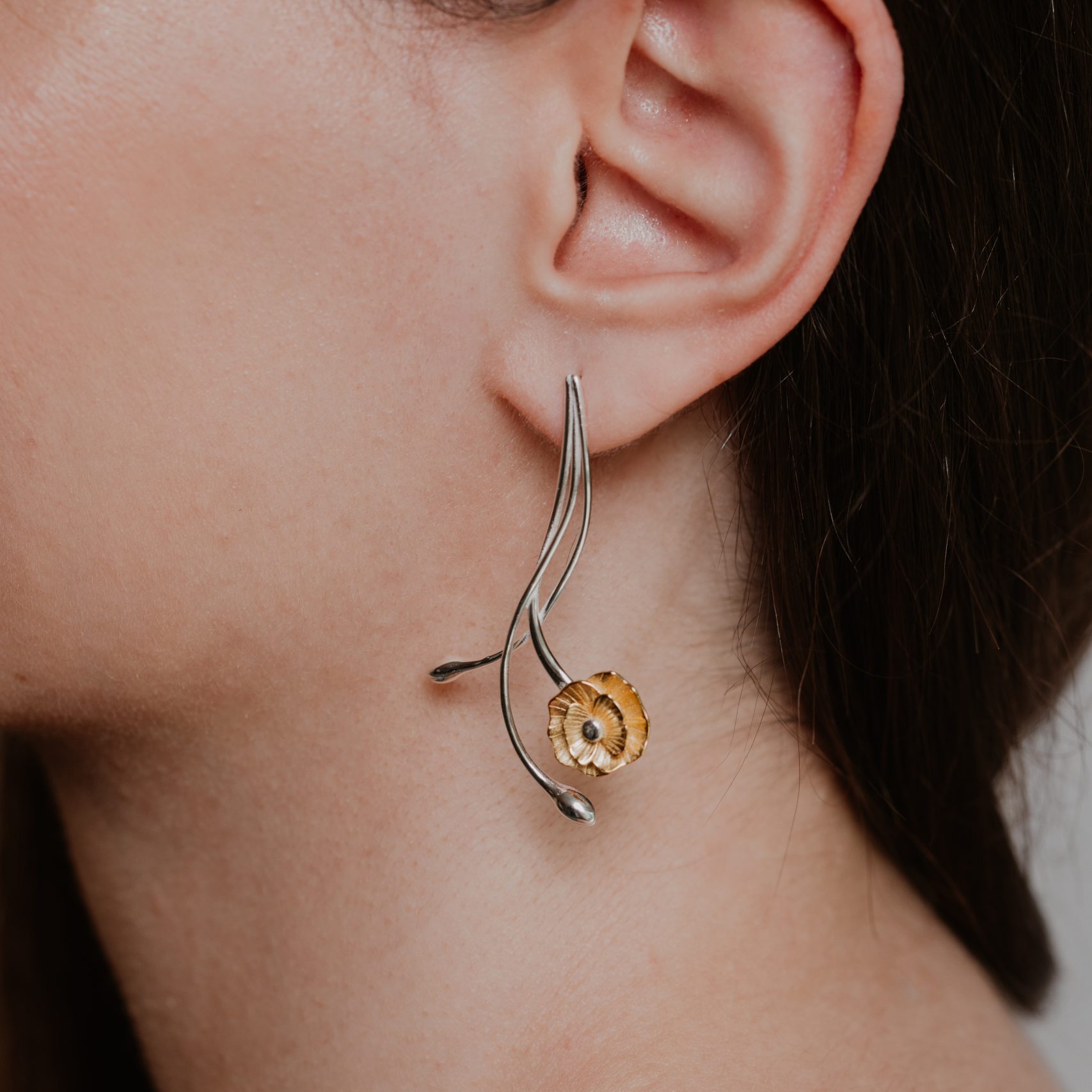 Orecchini realizzati artigianalmente in Argento 925 e rifiniti con placcatura in oro 18 carati.