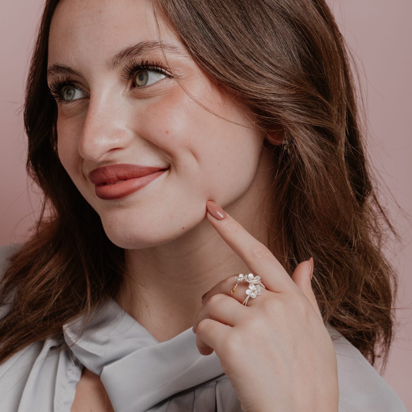 Ogni fiore รจ scolpito con cura, con petali sottili e leggeri che catturano la luce in modo naturale, donando un tocco di freschezza e romanticismo. Inoltre รจ regolabile, per poterlo indossare dove piรน ti gradisce.